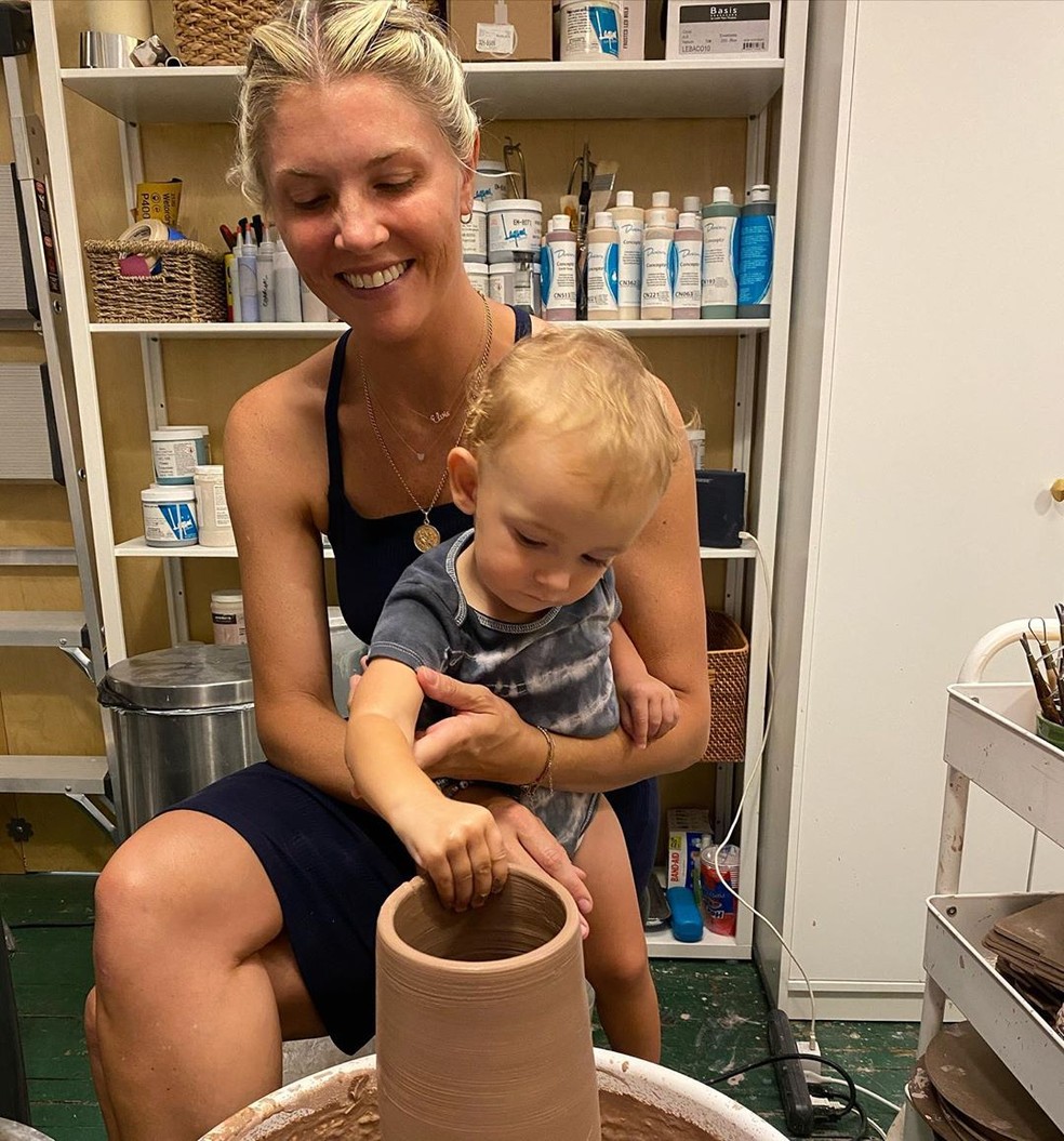 Amanda Kloots, viúva do ator Nick Cordero, usou parte das cinzas do ator para fazer um vaso de cerâmica.